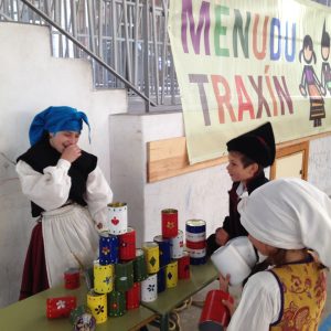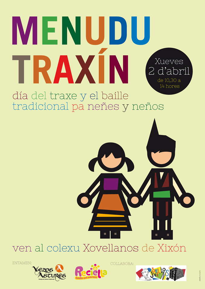 Dientro del nuesu enfotu por esparder la cultura tradional ente les nueves xeneraciones, entamamos, n’abril del 2015, xunto col collectivu Reciella el primer Menudu Traxín nel colexu Xovellanos de Xixón, un averamientu al baille y al traxe tradicional pa los más pequeños.